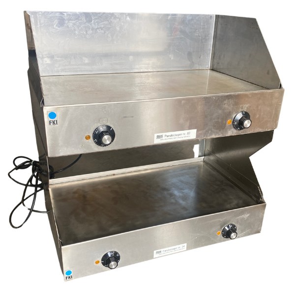 Smart dobbelt pande steger, som optimerer pladsen i eks. en madbod. Pandestegeren har samtidig en stænkskærm monteret.